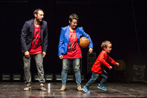 Ecco allora che Jesus rappresenta una totale messa a nudo di questa evoluzione e della compagnia stessa. Con straordinario coraggio e con unicità: unicità di temi e unicità di modalità artistiche nell’affrontarli. Per la prima volta Enrico e Valeria sono in scena “in quanto” Enrico e Valeria: parlano in prima persona perché esprimono sé stessi, sono dunque insostituibili. E raccontano sé stessi. In apparente dialogo con Gesù. Ma il vero protagonista, questa volta, non è chi compare nel titolo: Jesus è un depistaggio, perché il vero protagonista è Ettore. Il figlio di neanche 4 anni che apre e chiude lo spettacolo, prima con le sue corse concentriche e gioiose nel palco vuoto, poi saltando con le corde elastiche sostenuto dai genitori (e qui l’autocitazione va ovviamente al “volo” di Ferrarini nel finale di Pinocchio: e d’altra parte Jesus è colmo di rimandi di questo tipo a molti spettacoli precedenti). E’ lui il motore concettuale dello spettacolo: è lui che chiede perché si vive e perché si muore, è lui che innesca risposte difficili, ma che soprattutto provoca domande. Ecco, le domande sul senso della vita (nientemeno! ebbene sì, una cosa così pura e semplice – “il senso della vita” – generalmente espulso dalle creazioni contemporanee, o diluito attraverso altri discorsi, o rielaborato in dialettica con la divinità: e parlando di Jesus non si può non ricordare che pochi anni fa Castellucci si era interrogato con asprezza Sul concetto di volto nel figlio di Dio) rimbalzano nella loro immediatezza popolare (pop) sulla scena, mostrandosi nella loro enormità e fragilità al tempo stesso. A cominciare dalla prima scena, nella quale Enrico e Valeria, che sono Enrico e Valeria, raccontano con irresistibile autoironia, le vicissitudini della creazione stessa di questo spettacolo.