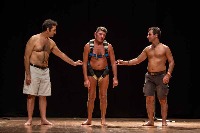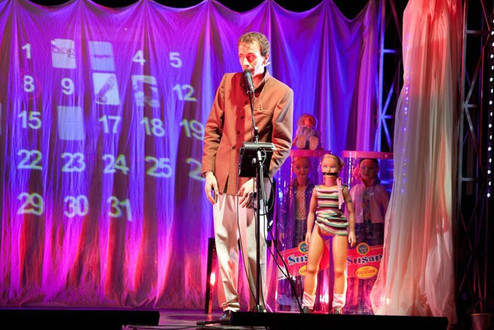 Perché a mancare in questi tentativi di ricordare è, forse, qualcos’altro. In mezzo al dubbio tra lingua e oggetti, si insinua una terza possibilità, che ci viene suggerita da un altro spettacolo sulla memoria da riconquistare: Pinocchio di Babilonia Teatri. Ossia, il corpo. In Pinocchio, tre persone uscite dal coma raccontano brandelli di memoria, che non è né memoria di oggetti (anche se, a un certo punto, manipolano dei vecchi giochi) né memoria linguistica (anche se, per tutto lo spettacolo, il loro parlare è una lotta contro gli impedimenti del parlato dovuti al trauma), ma è memoria del corpo. Ci si presentano con i loro spogli corpi attuali, che hanno attraversato drammaticamente l’immobilità psicofisica, marcando visivamente un tempo presente che chiede di ricordare ma non di recuperare il tempo passato. Il corpo non torna indietro, può solo rievocare gesti e movimenti appartenuti al passato, ma non riviverli. D’altra parte, se è vero che la permanenza sta negli oggetti e nella lingua, è anche vero che entrambi sono elementi morti: gli oggetti imbustati nella plastica asettica in Ogni cosa è illuminata sono senza più vita, così come le bambole di Spam, chiuse nelle loro confezioni e pronte a parlare suggerendo una lugubre (e volgare) parvenza di vita. E le lingue sono quella morta della città di Ebla, spazzata via dalla sabbia su cui fu scritta, oppure quella mai vissuta e mai viva delle traduzioni automatiche del web. Gli oggetti e la lingua, col portato mortale della loro essenza, gettano la memoria in un passato che non ritorna; i corpi, invece, trasformano la memoria (che il corpo non può più rivivere) in slancio verso il futuro. La bellezza dei corpi degli interpreti di Pinocchio non ha nulla da invidiare al passato di quei corpi, perché sono corpi vivi. Proprio l’ignoranza della via del corpo, allora, porta il protagonista di Spam ad avvitare la ricerca su sé stessa, nel labirinto del calendario in cui il tempo va avanti e indietro in base al sorteggio, tra reperti fisici e reperti linguistici, dove l’unico accenno davvero ‘sensibile’ al corpo è la mail che pubblicizza l’allungamento del pene… spam, appunto. Con il dubbio che anche il nostro passato e la nostra memoria, con i loro oggetti e con la lingua che serve per rievocarli, non siano altro che noioso, ridondante, incalzante, fastidioso, ossessivo e soprattutto inutile spam, che impedisce ai nostri corpi (e, dunque, alla vita) di essere e avanzare nel presente.