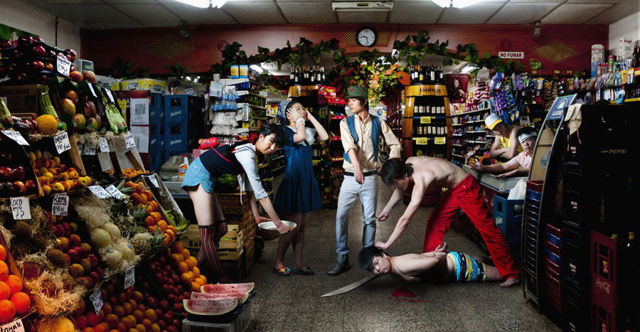 Ma il punto centrale di Spam è forse un altro: quando perdiamo la memoria, cosa perdiamo? E quindi, di cosa andiamo alla ricerca? Degli oggetti o della lingua? Perdiamo oggetti o perdiamo la lingua? E quindi, cerchiamo oggetti che ricompongano il mosaico dell’esistenza perduta, oppure cerchiamo lo strumento per ridefinire ciò che abbiamo perso e ciò a cui tendiamo, cioè la lingua? Questo interrogativo è alla base del lavoro di Spregelburd, che proprio tra il magazzino di oggetti evocati da ricomporre e i codici linguistici da testare conduce il gioco combinatorio di Spam. Gli oggetti come pezzi di realtà si mescolano nella scena e nel racconto, come per ribadire proprio quella realtà che si tenta di ricostruire. Oggetti che tuttavia sfuggono alla concretezza, o meglio: che rimandano ad altri fantasmi. Come l’intricata realtà della Decollazione di San Giovanni Battista di Caravaggio, che con Roberto Longhi possiamo definire proprio pittore della realtà, e che definisce al tempo stesso la fisicità concreta di luci, ombre e corpi, ma anche la loro evanescenza di figure e fantasmi, e che può assumere ulteriori rappresentazioni, come nella Decollazione ‘cinese’ fotografata da Nicolás Levin. O come il libro Lo straniero di Camus, che è evidente attributo del protagonista e che introduce il discorso dello spiazzamento linguistico, così come accade con la bambola parlante (oggetto) che chiama “troia” (lingua) la bambina. Bambola assemblata in Cina, con la voce di un’operaia ignara dell’italiano: nel mondo globalizzato, le lingue si confondono in una babele dove all’impasto inglese comune si sovrappongono le aberrazioni delle traduzioni automatiche. E così, la memoria viene ricostruita cercando di percorrere da una parte il sentiero materico della realtà fisica attraverso i suoi simulacri, come Pollicino che nella foresta ignota deve distinguere le briciole come reperti di una realtà nota; e dall’altra la fluidità di codici linguistici sfuggenti nella loro fenomenologia e nelle loro regole grammaticali, come l’antica lingua di Ebla, il cui bizzarro nominalismo figlio di una logica imperscrutabile guida come rotta privilegiata il percorso mnemonico del protagonista, attraversato da interferenze linguistiche di varia provenienza, dalla Malesia della truffatrice alla Cina dell’operaia al tedesco del sommozzatore, passando ovviamente per Google Translator, e senza dimenticare tutti i trabocchetti che l’italiano stesso può riservare. “A me interessano opere che costruiscono linguaggi”, dichiara Spregelburd (citato da Silvia Mei nell’introduzione a Lucido), il quale però dichiara anche: “Il reale sarebbe la parte dell’accadimento che il linguaggio non riesce a catturare” (in Prospettiva, a cura di Fabrizio Arcuri e Ilaria Godino, ed. Titivillus). E allora, sono gli oggetti a mantenere la memoria oppure è l’enunciazione? La seconda, direbbe il protagonista di Memento, costretto a scrivere sulle polaroid e perfino sul proprio corpo le parole che servono a fissare il tempo labile del passato. I primi, direbbe invece il protagonista di Ogni cosa è illuminata di Liev Schreiber, collezionista di oggetti la cui conservazione permette la permanenza della memoria. La seconda che crea i primi, sintetizzerebbe il personaggio interpretato da Sandro Lombardi nel film Il mnemonista di Paolo Rosa, in cui la saturazione delle parole in chi non riesce a dimenticare genera immagini e azioni.