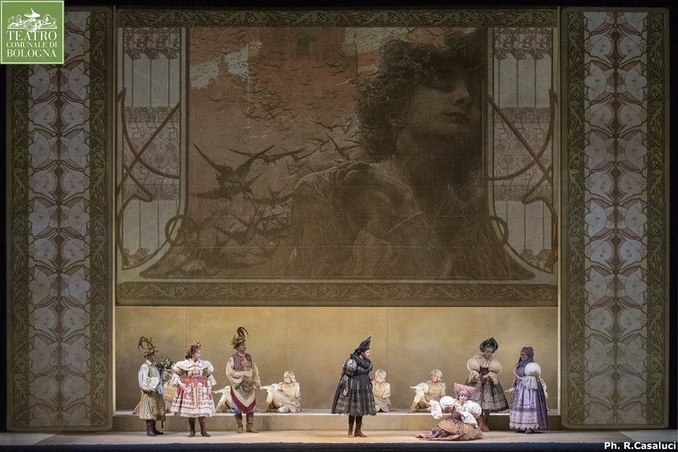Jenůfa, musica e libretto di Leóš Janáček, dal dramma La sua figliastra di Gabriela Preissová; con Andrea Dankova, Brenden Gunnel, Ales Briscein, Angeles Blancas Gulin, Gabriella Sborgi, Maurizio Leoni, Luca Gallo, Monica Minarelli, Leigh-Ann Allen, Arianna Rinaldi, Roberta Pozzer, Sandra Pastrana, Grazia Paolella; danzatrici Angela Sanchez Gonzales, Lea Bechu, Delphine Simons, Fanny Vandersande, Hanne Schillemans, Janet Novas, Lisa Van Den Broeck, Manuela Schneider, Martina Orlandi, Viola Vicini, Diletta Della Martira, Novella Della Martira, Marta Tabacco, Mariangela Massarelli, Veronica Gambini, Martina Platania; direttore Juraj Valčuha; regia e scene Alvis Hermanis; Maestro del Coro Andrea Faidutti; costumi Anna Watkins; luci Gleb Filshtinsky; coreografie Alla Sigalova riprese da Anaïs Van Eycken; drammaturgia Christian Longchamp; video Ineta Sipunova; assistente alla regia Marielle Kahn; allestimento del Teatro Comunale di Bologna in coproduzione con Théâtre de La Monnaie / De Munt Bruxelles; Orchestra, Coro e Tecnici del Teatro Comunale di Bologna.