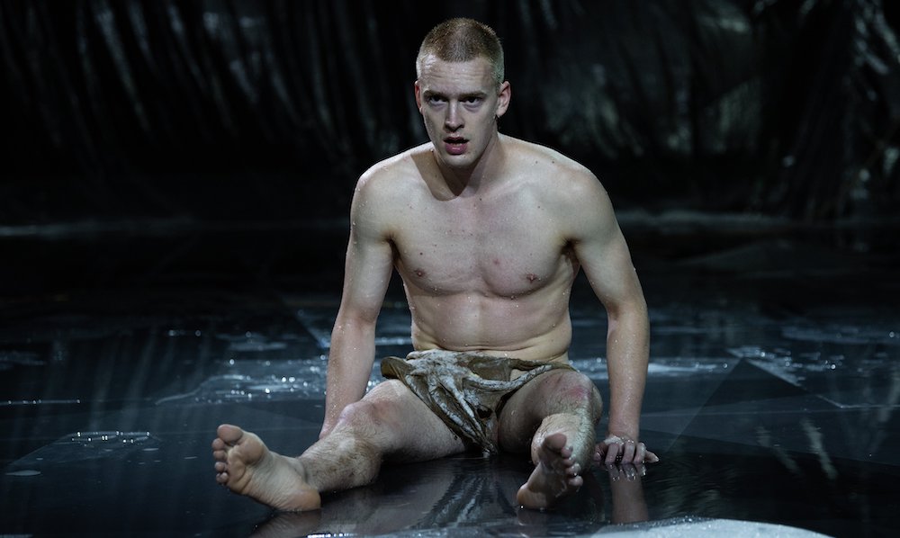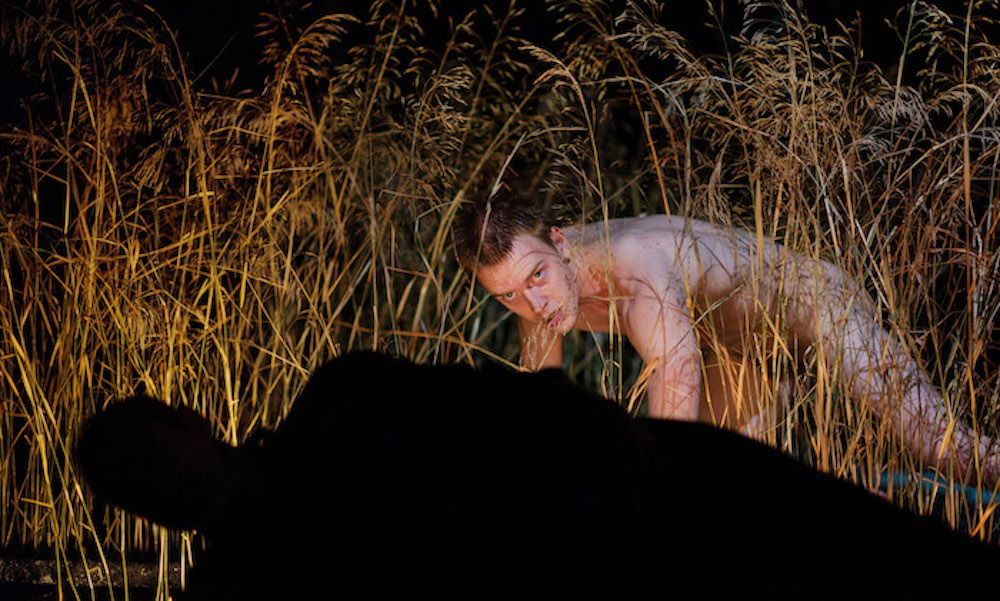 Ink si presta razionalmente a un’infinità di simbologie, nelle quali ciascuno può trovare una propria strada razionale. Sono tantissime. Talmente tante da far crescere il sospetto di un depistaggio. Il ‘guardiano’ dell’acqua potrebbe essere una sorta di demiurgo o di creatore, e l’alieno la sua creatura: ed ecco, quindi, che l’allegoria si dipana facilmente su questa strada raccontando la creazione; magari proprio quella biblica (in principio il buio, l’acqua…), e senza rinunciare all’evoluzionismo (la vita comincia nell’acqua, l’essere animale prima striscia, poi pian piano si tira su, fino a diventare homo erectus). Non distante dal tema della creazione ci sarebbe, poi, quello del rapporto tra padre e figlio, dalla dinamica complessa di odio-amore. D’altra parte non occorre scomodare complesse simbologie per ricordare come l’acqua sia considerata elemento femminile e materno, vitale: lo spruzzo seminale dell’irrigatore manovrato dal padre contamina la laguna dell’acqua ‘materna’, fino a far ‘nascere’, nella sua più esplicita nudità, il figlio. Ma nel tema della creazione c’è anche quello teologico, che si salda con quello mitologico, che un artista come Papaioannou, forte della tradizione culturale greca, ha esplorato spesso: e quindi, il rapporto tra i due non può essere, in qualche modo, anche quello tra dio e uomo, nella dialettica religiosa tra obbedienza e tradimento, magari alludendo anche a un qualche paradiso terrestre bucolico, oppure nella rievocazione delle lotte mitologiche tra i signori dell’Olimpo e i terrestri?