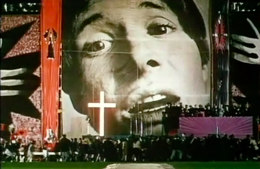 La goccia che fece traboccare il vaso delle relazioni tra Watkins e l’Inghilterra, e che fece abbandonare per sempre al regista il suo paese, fu il primo film pensato direttamente per il cinema: Privilege (1966), l’unico altro lavoro di Watkins distribuito in Italia. Qui il tema si sposta sugli intrecci tra il potere e la sempre più dilagante cultura pop giovanile, che proprio l’Inghilterra aveva rilanciato con i Beatles e l’affermarsi di subculture trendy dai mods ai rockers. Protagonista di questo film-apologo è un cantante «ribelle», blandito e infine risucchiato dai poteri forti: non solo quello politico, ma anche quello religioso ed economico. Così la pop star (impersonata da un vero cantante, Paul Jones che – ironia della sorte – in seguito passerà davvero dal pop alla chiesa) si ritrova a essere un semplice burattino nelle mani di chi vuole convogliare le masse di giovani attraverso un finto ribellismo verso il consenso e l’omologazione.