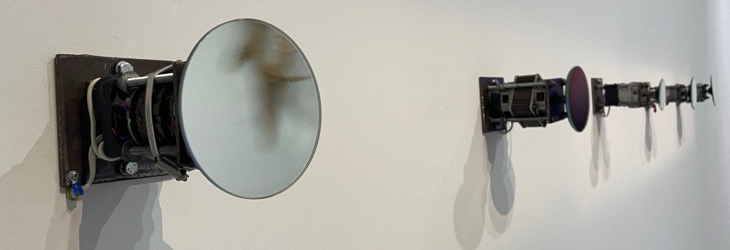 Ecco Lenin al centro del quadro di Šarūnas Sauka Bothersome dream (2005), “sogno molesto” che vede lo statista russo in un apocalittico rendez-vous distopico, come in un’allegoria di Bosch irridente e malata. La visione surrealista e grottesca di Sauka lo accomuna ad altri artisti in mostra, come Henrikas Natalevičius e le sue figure informi e deformi, o Valentinas Antanavičius con le figure destrutturate del suo Surrealistic erotic triptych (1975) o Raimundas Slizys in caricature e distorsioni che occhieggiano un po’ a Klimt e un po’ a Grosz. Un’alterazione della figura umana che si proietta sullo spettatore con l’installazione For deconcentrating attention (1996) di Gintaras Makarevičius, ossia piccoli e diversi specchi che vibrano ciascuno in modo diverso deformando l’immagine, ma che sembra alimentarsi di una certa tradizione pittorica lituana pre-indipendenza, qui ben documentata dalle opere di di Arvydas Šaltenis degli anni ’80, con volti slavati che sbucano da cabine telefoniche, e che a loro volta richiamano i quadri di Kostas Dereškevičius degli anni ’70, che evitano la figura intera e si soffermano su frammenti di corpi in contesti quotidiani (gambe sotto un tavolino, volti dal finestrino di un autobus…), che rimbalzano poi nelle fotografie di Vitas Luckus in cui si accostano frammenti di corpo a oggetti, e nell’opera polimaterica di Ieva Martinaityte-Mediodia, una Natura morta (1996) che espone un corpo frammentato come in un lugubre tavolo anatomico.