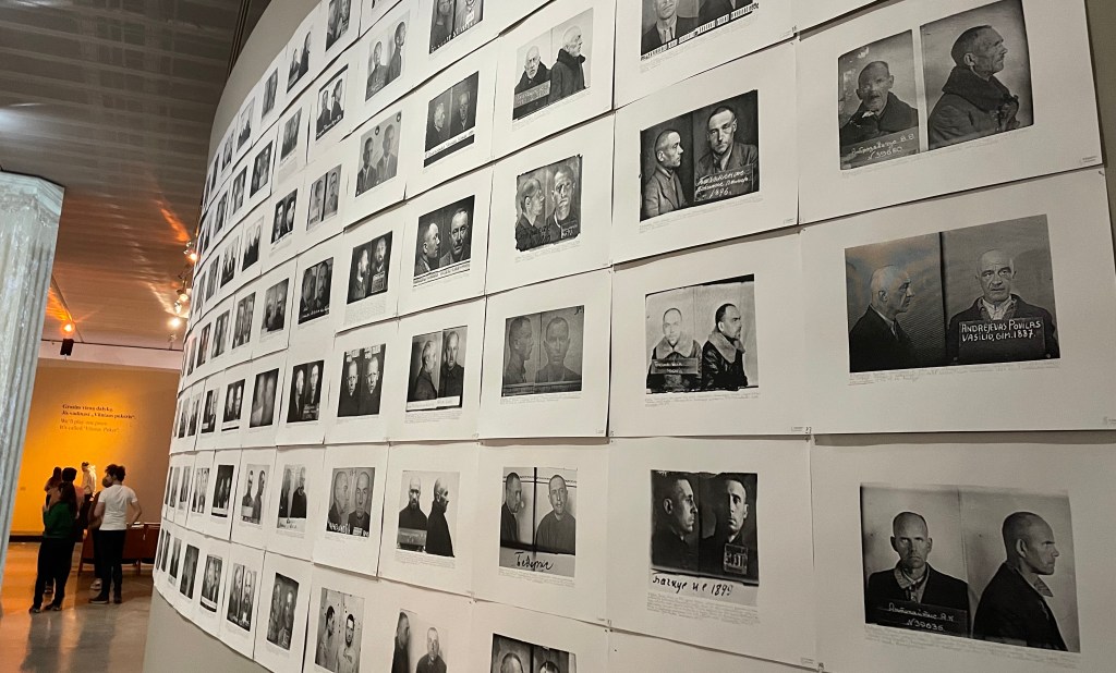 Oggi ho riscoperto una città diversa, che ha ridefinito la propria storia, che ha valorizzato i suoi 700 anni cercando di riempire i buchi, disseminando le sue strade dei nuovi segni della globalizzazione, che peraltro già allora iniziavano a comparire. E di frammenti del passato: tante targhe e statue nuove a ricomporre una narrazione, a cominciare dall’imponente monumento allo stesso Gediminas realizzato nel 1996 con gusto antico. E di sospensioni sottili, come in piazza Lukiškės, cuore della memoria dolorosa da riconnettere al presente, dove stava la statua di Lenin abbattuta all’indipendenza e dove stava la famigerata prigione russa delle torture, oggi istoriata con i nomi delle vittime: nell’equilibrio delicato di quel luogo così emblematico, il centro della piazza è ora occupato da una gigantesca bandiera della Lituania, non quella attuale ma quella storica.