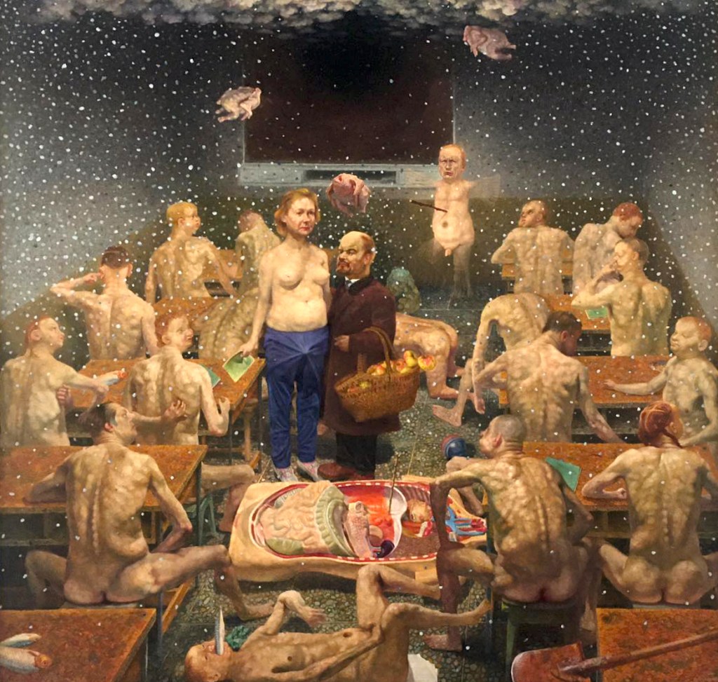 È anche il titolo di un romanzo culto di Ričardas Gavelis pubblicato nel 1989, che riflette il peso dell’oppressione e repressione sovietica, in una narrazione vista da quattro diversi e contrastanti punti di vista su uno stesso corpo-città. Da quella suggestione, anzi da quel mito di una Vilnius così stratificata e vitale (“ogni cosa è possibile a Vilnius”, scrive) ecco l’idea di una mostra che si dipana come un labirinto urbano, scandito da citazioni di Gavelis e accompagnato da una colonna sonora di forte espressività, che condiziona la visione. I visitatori si trasformano così in turisti di una Vilnius reinventata e in spettatori di una Vilnius palcoscenico, tanto locale quanto universale, che porta non a caso la cura e la firma di un regista teatrale come Oskaras Koršunovas, che ha organizzato la mostra come una narrazione ideale che attraversa proprio quelle stratificazioni, dalla pittura in epoca sovietica fino alle sperimentazioni contemporanee (l’anno di nascita degli artisti esposti va dal 1927 al 1994), che costituiscono l’identità della città oggi.