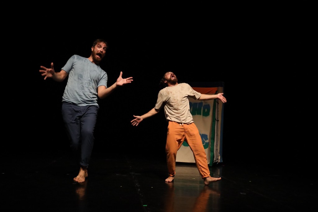 Quello che si rivolge al pubblico più piccolo, dai 3 ai 6 anni, è Lino e Lone di V.A.N. Verso Altre Narrazioni, scritto e diretto da Ornella Matranga. E ancora, fin dal titolo, ci troviamo in un rapporto di amicizia e solidarietà tra due figure complementari nella loro ‘diversità’: il basso di statura Lino e lo spilungone Lone, il primo radicato nella terra e il secondo proiettato nel cielo. Il linguaggio elementare, scelto per i destinatari del progetto, nasconde dunque questioni profonde e complesse, a cominciare dal confronto tra opposti, quasi alchemico (siamo a un passo dalla vertigine esoterica dell’incontro tra opposti, simboleggiati da terra e aria, con l’aggiunta di ulteriori tracce disseminate nel racconto: ma questo, pur rappresentando uno spunto intrigante e non certo peregrino, ci porterebbe fuori strada, anche se tutto questo sembra ribadire il senso ‘magico’ dell’infanzia che potrebbe essere in grado di ‘dialogare’ con la ‘magia’ alchemica, ovviamente in modo puramente fantasioso). Anche in questo progetto è significativa la forte fisicità dei corpi, che parte dalle caratteristiche narrative per diventare linguaggio espressivo, così come la proiezione della performatività nel pubblico, con i bambini allegramente coinvolti. In questo caso, la trama prevede un viaggio alla ricerca della marmotta (ecco l’animale), che vede consolidarsi e arricchirsi un’amicizia iniziata con la diffidenza e la vergogna di ciascuno dei due per la propria condizione di diversità. Ricerca che la compagnia vuole prolungare con l’idea, assolutamente congeniale e auspicabile, del lavoro seriale: tanti piccoli spettacoli con i protagonisti Lino e Lone in viaggio.