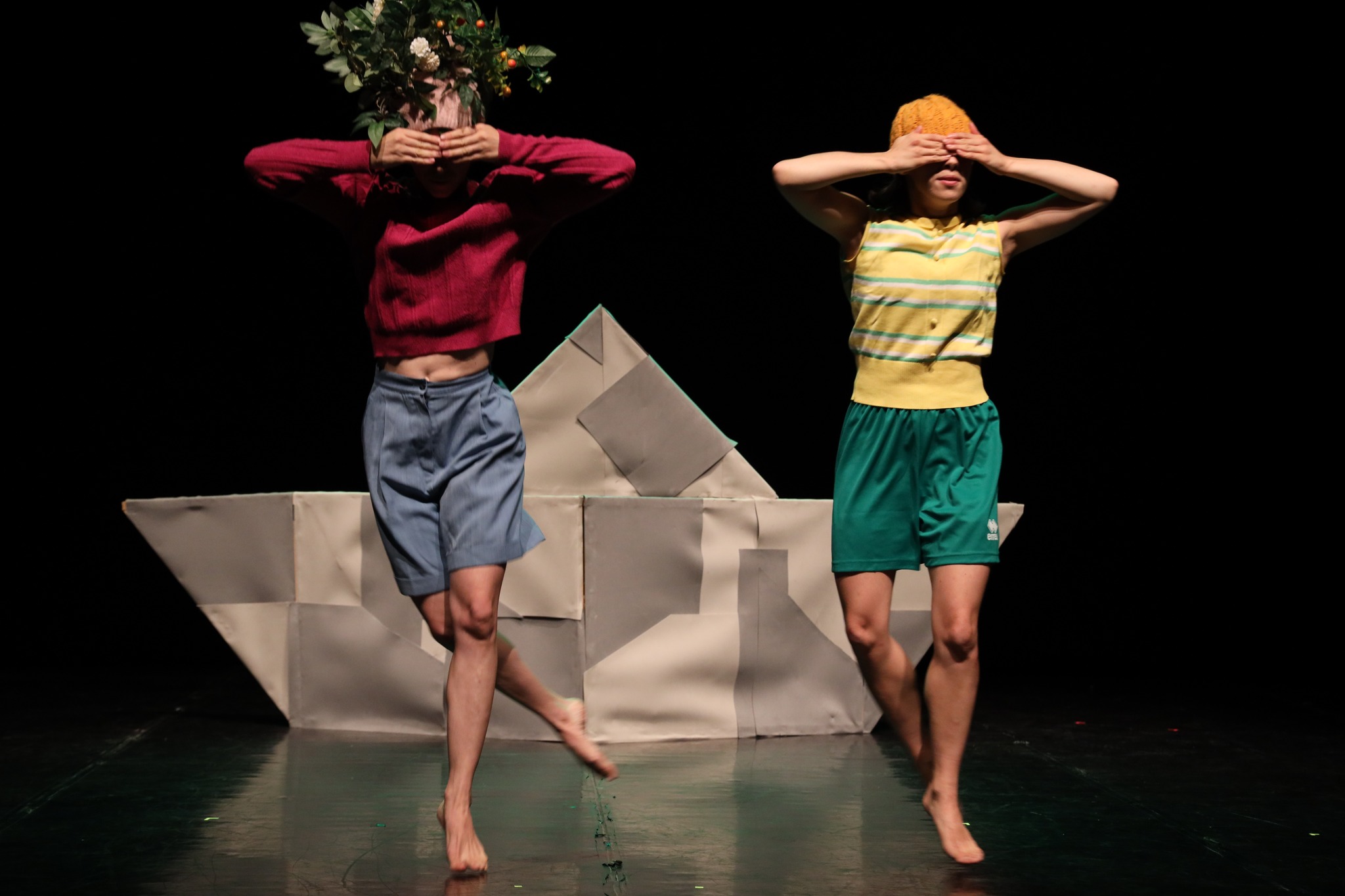 Cosa hai in testa? di Claudia Rossi Valli e Natiscalzi DT, vincitore del Premio Scenario infanzia di questa edizione, riprende l’albo illustrato Il bambino con i fiori nei capelli di Jarvis, interpretandone la storia di amicizia sul filo rarefatto e sinuoso dell’irrealtà: il bambino in questione è amico reale o virtuale o proiezione speculare e fantasiosa del narratore? Nello spettacolo, il genere muta arricchendo di sfumature alcuni passaggi. La bambina, che ci viene presentata dall’amica, ha per capigliatura un grumo inestricabile di rami, foglie e fiori, nel quale si celano di volta in volta un canarino, le cuffie auricolari o la luna. Il racconto procede per scene paratattiche, con varie declinazioni di questa particolarità e di questa amicizia, che a un certo punto vive l’impulso di un viaggio comune, altrettanto surreale e fantastico, come appare fin da subito con l’enorme barchetta di carta che campeggia in scena. Eppure non si tratta di un semplice racconto di amicizia, ma di un potentissimo viaggio iniziatico (e perciò simbolico, dove chiunque può proiettare nel simbolo un diverso significato): la chioma ramificata della bambina perde fiori e foglie, si secca, trascinando nell’aridità la bambina stesso, forse la malattia, la depressione, la morte, oppure semplicemente la distanza, la rottura dell’amicizia, la metamorfosi dell’età. Sta di fatto che solo l’aiuto dell’amica, che costruisce fiori di carta da aggiungere alla chioma secca, come fossero protesi, medicine o nuovi soffi vitali, o un modo consapevole di ridare vitalità a una relazione, riesce a riportare la bambina alla sua vita e vitalità.