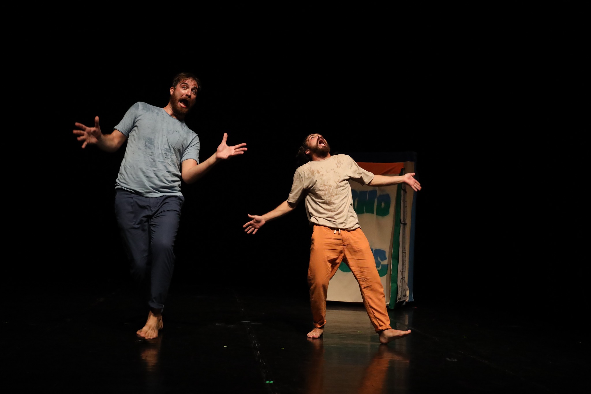Quello che si rivolge al pubblico più piccolo, dai 3 ai 6 anni, è Lino e Lone di V.A.N. Verso Altre Narrazioni, scritto e diretto da Ornella Matranga. E ancora, fin dal titolo, ci troviamo in un rapporto di amicizia e solidarietà tra due figure complementari nella loro ‘diversità’: il basso di statura Lino e lo spilungone Lone, il primo radicato nella terra e il secondo proiettato nel cielo. Il linguaggio elementare, scelto per i destinatari del progetto, nasconde dunque questioni profonde e complesse, a cominciare dal confronto tra opposti, quasi alchemico (siamo a un passo dalla vertigine esoterica dell’incontro tra opposti, simboleggiati da terra e aria, con l’aggiunta di ulteriori tracce disseminate nel racconto: ma questo, pur rappresentando uno spunto intrigante e non certo peregrino, ci porterebbe fuori strada, anche se tutto questo sembra ribadire il senso ‘magico’ dell’infanzia che potrebbe essere in grado di ‘dialogare’ con la ‘magia’ alchemica, ovviamente in modo puramente fantasioso). Anche in questo progetto è significativa la forte fisicità dei corpi, che parte dalle caratteristiche narrative per diventare linguaggio espressivo, così come la proiezione della performatività nel pubblico, con i bambini allegramente coinvolti. In questo caso, la trama prevede un viaggio alla ricerca della marmotta (ecco l’animale), che vede consolidarsi e arricchirsi un’amicizia iniziata con la diffidenza e la vergogna di ciascuno dei due per la propria condizione di diversità. Ricerca che la compagnia vuole prolungare con l’idea, assolutamente congeniale e auspicabile, del lavoro seriale: tanti piccoli spettacoli con i protagonisti Lino e Lone in viaggio.